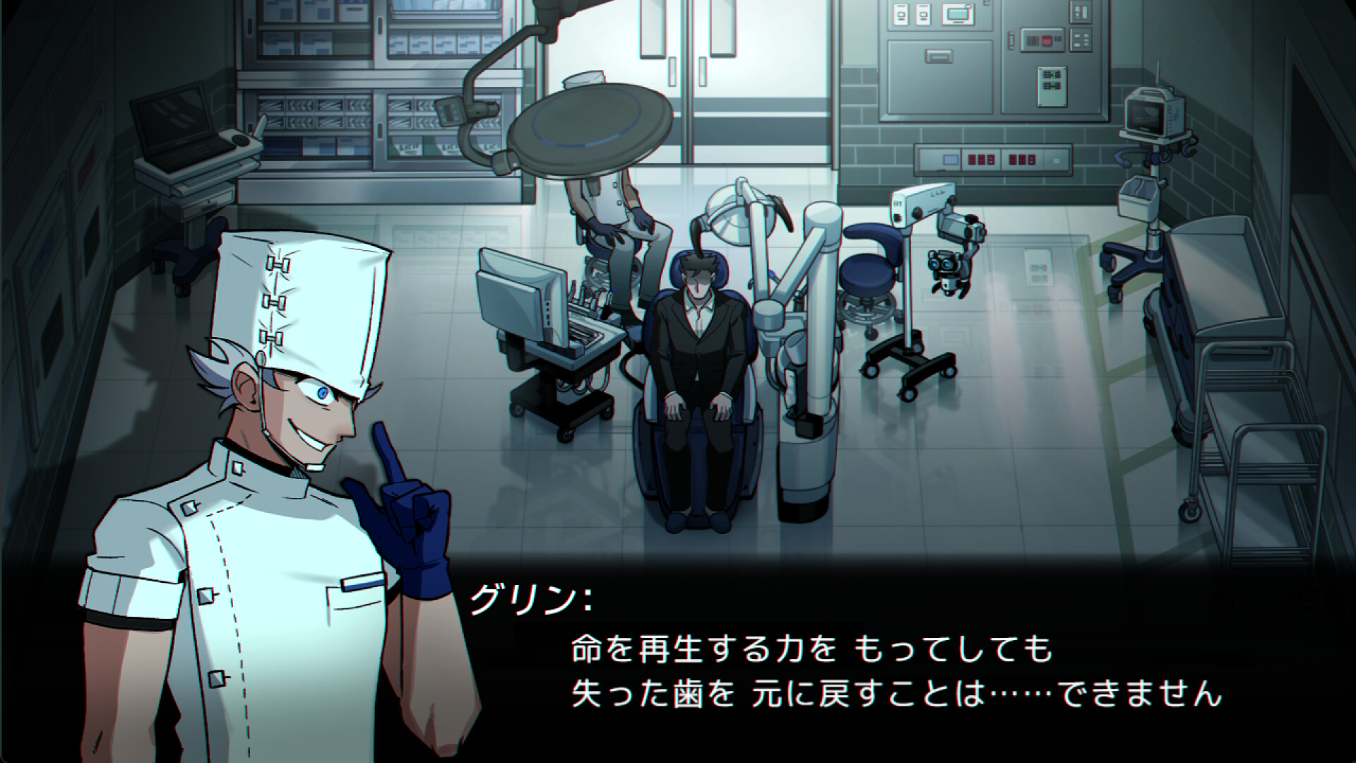 ▼故事背景 2010年,世界人口中1%的群体拥有超能力。拥有不死之身的斯卡勒博士为研究超能力开展残酷的人体实验,行事毫无犹豫与畏惧。唯有一件事令这个男人战栗:永无止境的牙科治疗噩梦。坚持贯彻牙齿护理的斯卡勒未曾料到,这场噩梦竟会成为现实。 ▼以牙科治疗为主题的心理恐怖×简易探索系统 游戏采用简易的2D探索机制,基础操作仅限移动与调查(对话)。玩家将操控斯卡勒博士穿梭于现实世界与精神世界,揭开困扰他内心的谜团。 ▼多结局设定 根据选择分歧将迎来三种结局。 虽拥有超凡力量却独惧牙科治疗的斯卡勒博士,每个选择都将引领他踏上寻找真我的旅程。 ▼神秘角色群像 当然不止他拥有超能力,就连信赖的牙医恐怕也藏着可怕的能力。 他的选择会拯救人类还是带来毁灭?敬请见证斯卡勒博士与人类的命运走向。 ◆预计游戏时长 ・主线通关:约3-4小时 ・全结局收集:约3-5小时 ◆游戏特色 ・剧情驱动的探索冒险 ・经典简易探索系统 ・以牙科治疗为主题的心理恐怖 ・多选择分歧结局 ・与神秘角色的对话互动 ・黑暗风格电影级原画