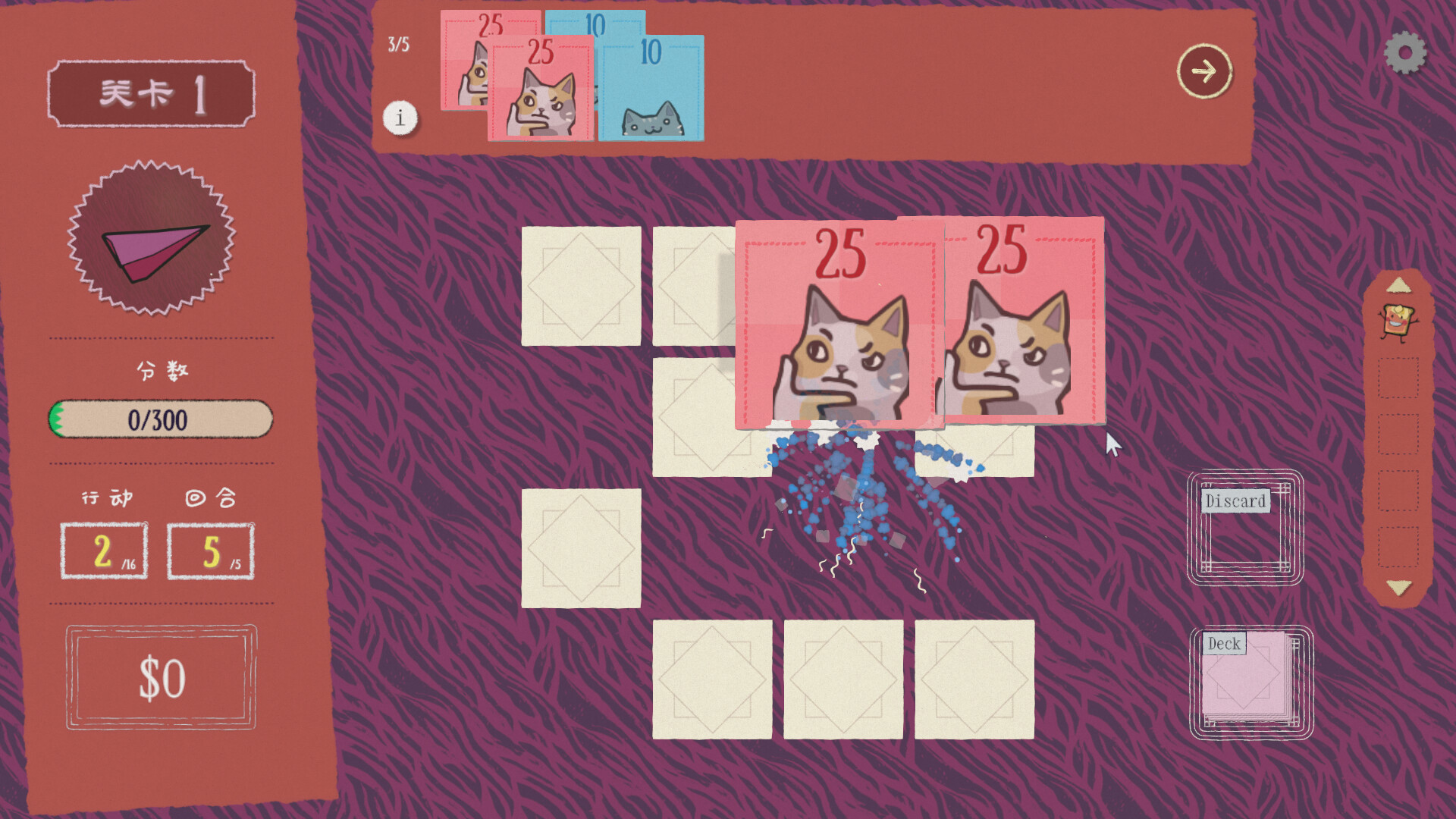 《双喵成行》是一款颠覆传统翻翻乐规则的 Roguelike 卡牌构筑游戏,由来自土耳其的游戏制作人Brainoid一人开发。 在这里,匹配卡牌只是开始——你将通过奇妙的道具、稀奇古怪的效果和脑洞大开的策略,彻底改写游戏方式! 你需要: 翻开额外卡牌,保持牌面可见;召唤百搭王牌,强行配对;借助奇妙的道具改变规则,把“失误”变成机会。 每局游戏都独一无二:尝试不同牌组,探索新流派,或是一路乱翻靠运气通关。 无论哪种玩法,都能体验到突破常规的乐趣! 🃏 5 种卡牌颜色,各自包含独特的机制 🔮 55+ 特殊卡牌,从记忆干扰到改变现实 ✨ 50+ 小物件,重新定义你的策略和配对方式 🧪 4 类精华,附带 14 种不同升级效果 🔥 迎接 21 关逐步升级的挑战 👑 独特的头目关,附带棘手的限制效果 📨 还有更多内容,敬请期待! 每一局都是一次全新的挑战: 打破常识:用奇特的道具改写规则,玩出意想不到的效果。自由构筑:尝试不同思路,无论是叠加额外行动、自动翻牌、操控回合、倍率流,还是纯粹乱翻一通,都能玩出花样。逐步升级:通过 21 关的挑战,击败带有限制效果的头目,解锁更强卡牌与全新牌组。 在《双喵成行》的世界里,你会沉浸在爵士乐氛围与猫咪梗交织的轻松环境中: 可爱的猫 meme、逗趣的喵喵音效、活力十足的视觉表现,让你在笑声中不断追求更高的分数与更炫酷的策略。 无论你是想靠记忆力碾压,还是享受脑洞大开的连携,《双喵成行》都能满足你。 每一局都与众不同,每一局都让你欲罢不能!