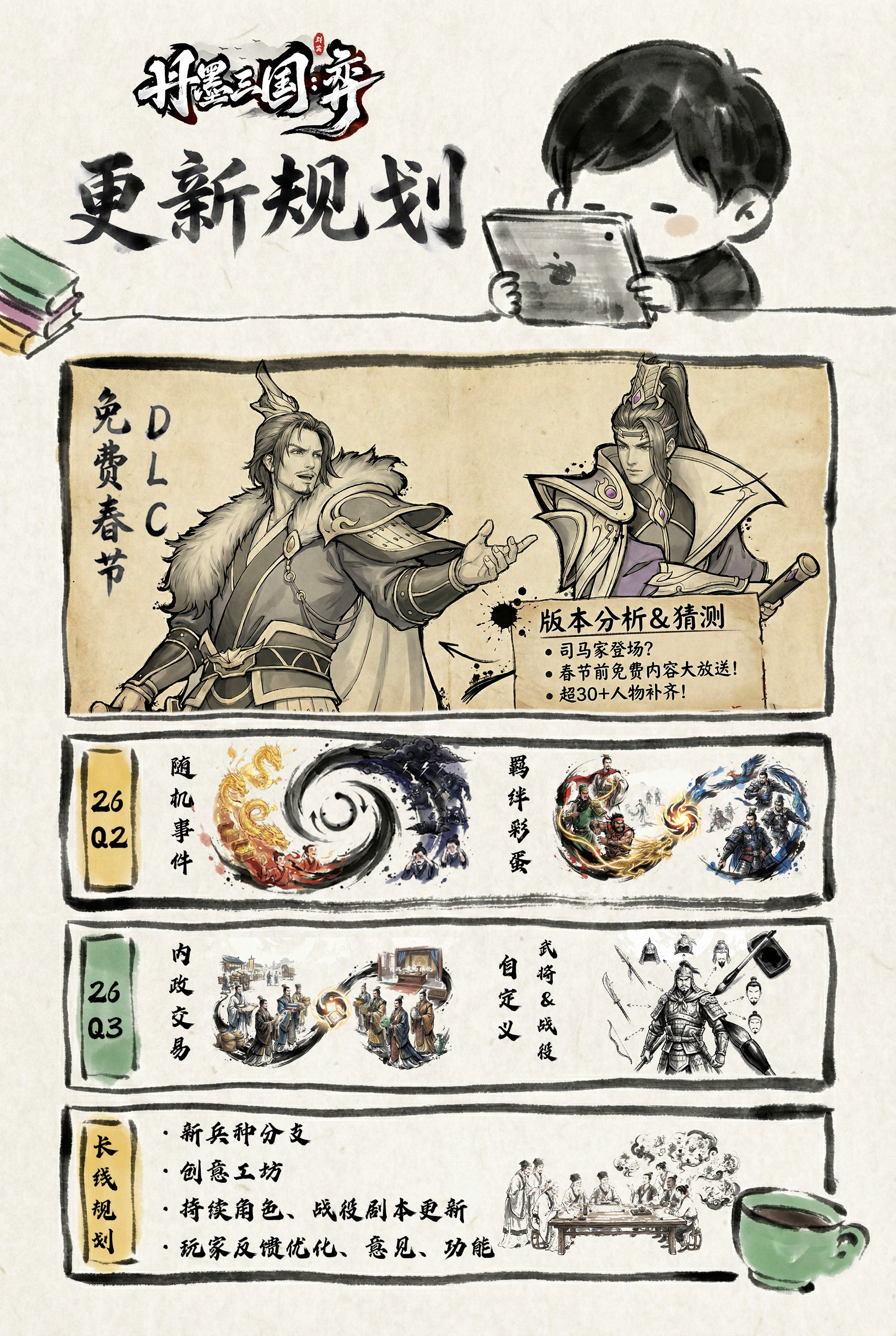 希望大家也能积极反馈给我们建议,帮助我们持续改进。游戏后续还会迭代更多的三国将领登场,我们也会持续开发更多的剧情给大伙们体验!