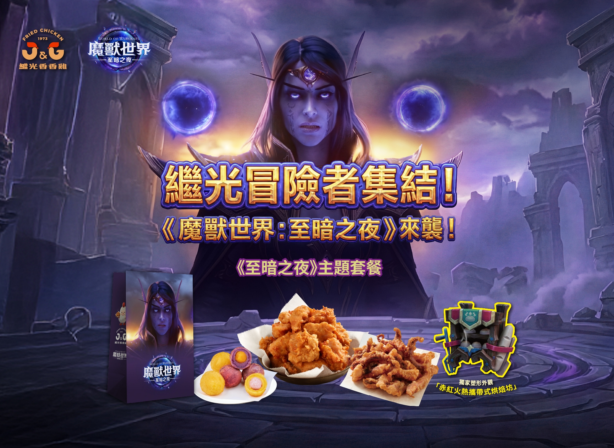 購買方式:於 foodpanda 主題套餐專區或是繼光香香雞全台門市(桃園機場管制區除外)購買《魔獸世界:至暗之夜》主題套餐
