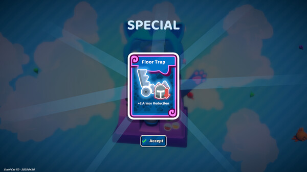 《Sushi Cat Tower Defense》为这个深受喜爱的系列带来了全新的玩法类型! 这一次,寿司猫必须抵御被坏蛋魔法厨师西兰苔腐化的邪恶寿司大军。只有吃掉大量的寿司,寿司猫才能粉碎西兰苔控制世界的阴谋! 准备你的防御 部署各种以猫咪为主题的防御塔 用迷宫墙封堵关键路线 放置陷阱来奇袭并削弱敌人 肉鸽风格 专为快节奏游戏而设计,只有一个不断演变的关卡,外加无尽模式 挑选决定你策略的恩惠卡 在每一局中击败强大的 Boss 敌人 在每局之间解锁永久升级 塑造路线 抵御一波又一波的邪恶寿司敌人,守护寿司猫。 布置防御来阻止敌人靠近寿司猫。收集寿司并不断给他喂食,从而增强他的能力。 在一波波的遭遇战中存活下来,同时修建障碍物、防御塔和陷阱,打造一个蜿蜒曲折的迷宫来让敌人穿行其中。 解锁天赋和恩惠 升级你的天赋树来解锁永久的能力加成。 解锁新的防御塔和陷阱,使你有更多可选的防御手段。 为寿司猫解锁极具破坏性的新绝招。 收集恩惠卡,以独特的效果塑造每一局游戏。