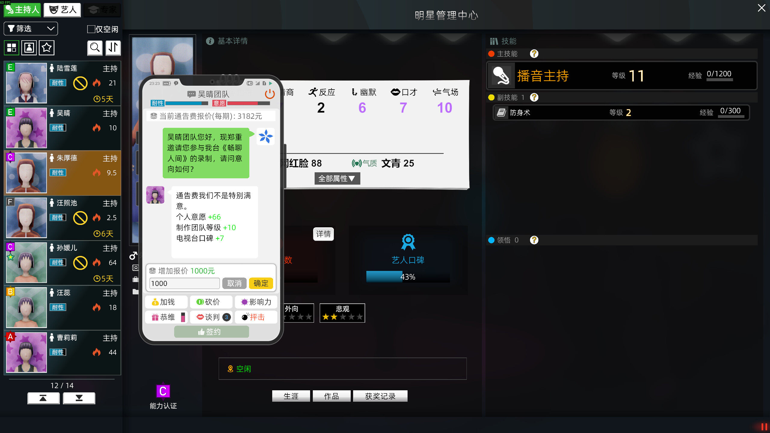 關於此遊戲 电视台模拟国是一款融合了探索,建造,数值养成等玩法的模拟经营游戏。您将扮演某处小电视台的新任台长。在广阔的大洲王国中,同其他电视台争夺天下。您可以通过多种方式做大做强自己的电视台,比如合理编排节目,拔高收视率,策划王牌综艺节目,高价拍卖节目首播权。打造精彩的新闻节目,一举收获天价广告赞助。还可以扮演星探,发掘大洲王国的下一个顶流艺人! 高动态游戏系统, 还原现实收视规律。 游戏创建了一套复杂的数据模拟系统,将人群划分为17个具有代表性的群体,每个群体根据实际比例设立了数百到数千个智能的样本户,每个样本户就是一个活生生的观众,他们有各自不同的作息和收视习惯,喜好倾向等。你将能最大化体验电视行业的博弈乐趣。你将能体验,现象级收视率所要求的“天时地利人和”。有时,一个策略性的节目编排就可拯救你于水深火热,而一个小小的失误就可让你的王牌节目沦为炮灰。 综艺,新闻,下一个王牌PD就是你 想打造自己的“快X大本营”,“明X大侦探”“极X挑战”? 没问题!我们设计了详细的自制节目玩法,你先要组建一个自己的制作团队,然后自己编排节目的每一个环节,选择好艺人,然后3,2,1,开拍!每一步的选择,都会作用在最终成片,导演的偏好将会影响节目的特点,环节的有趣与否会影响艺人的参演意愿。艺人的性格会影响节目是否受欢迎。种种因素交织,预算和时间又有限,全看你怎么平衡各方,打造收视口碑两开花的好节目! 🔎 发掘新人,培养顶流明星 王牌电视台都要有自己的顶流艺人,你也不例外!你当然可以高价挖来别家的明星, 不过,养子不如亲生,何不从零开始培养自己的明星?你可以派出星探四处寻访,签下那些有潜力,但还默默无闻的新人,通过上节目,出外景,采访,等多种方式培养,让她(他)一步步登上大洲国的流量之巅。 基建经营,员工培养 模拟经营游戏,自然离不开建造玩法,在《电视台模拟国》中,您可以高度自定义自己的电视台园区,亲手设计,建造每一座演播室,录制厅,综艺舞台...,打造独一无二的园区。您可以看到员工在您DIY的园区中穿梭工作,日常运营。经营电视台不止有大方向的把控,作为负责任的台长,您还将亲临日常经营的一线,经受大大小小诸如员工会议,员工士气,节目细节调整等工作。除此以外,游戏还有一套精细的员工养成玩法,您可以有选择地培养员工的数值,通过等多种手段,一步步培养自己手下的王牌打工人。 覆盖全天下,打造传媒帝国 除了上述玩法以外,你的最终目标,是让全国的观众都看到自己的节目,打造称霸大洲王国的传媒帝国。 每一地的观众喜好,看电视的时间段都不相同,调整你的策略,网罗所有的电视信号!