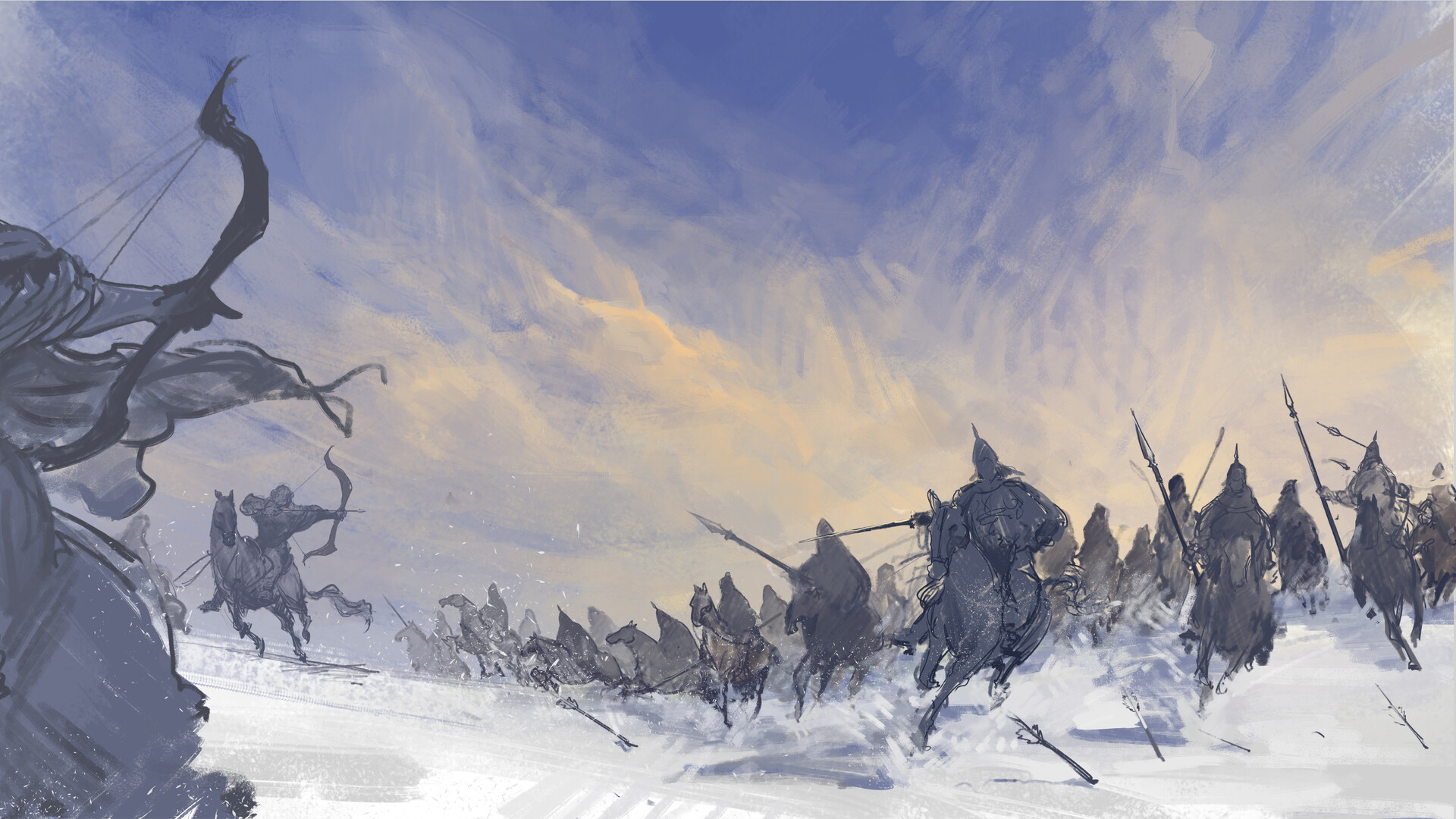 • 写实向国风美术,融合“伪厚涂”表现技法