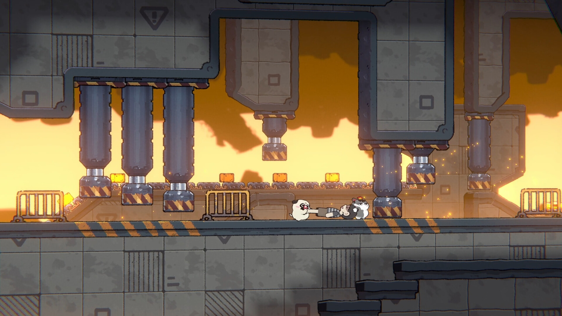 吾皇和巴扎黑通过“少年”紧紧连接在一起。没办法,谁让这家伙一摊不起,既然如此,就给皇皇黑黑当“绳子和杠杆”吧。充分利用面条人主人的柔韧性,穿越各种障碍。 不管是光滑玻璃还是粗糙水泥,找准时机一口咬死!把牙齿当岩钉,把自己挂在墙上,做队友最坚实可靠的支点。在地面按下蹲键,利用体重将自己变成稳固的“地桩”。只要一头稳住,另一头就能放心起飞。 中间的少年就是你们的摆锤!围绕队友旋转、加速,在离心力达到顶峰的瞬间解除锁定,一起划出完美抛物线,或者……精准地撞在墙上。 双人默契模式: 一个负责看准时机起跳,一个负责精准固定。如果节奏乱了,你们就会像挂腊肠一样挂在半空。 互坑预警:是拉队友一把登顶,还是在TA起跳瞬间反向拉扯搞事情?全看你的心情! 闯关之余别忘了留意隐蔽角落!解救沿途的流浪猫咪,解锁专属成就与图鉴,把它们带回游戏首页展示。和吾皇巴扎黑一起守护流浪动物吧!