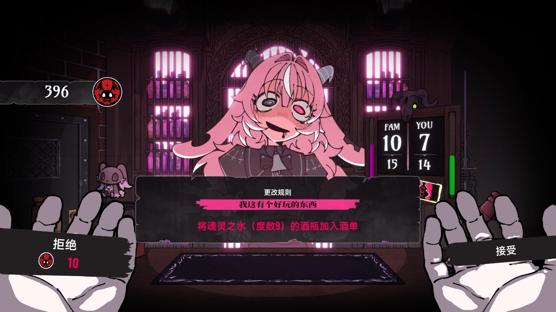 规矩只有一条!把恶魔灌到烂醉,让她把灵魂都吐个一干二净,你就赢了!
